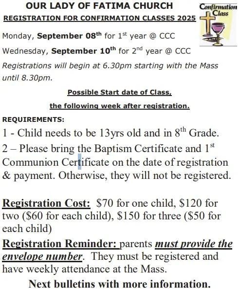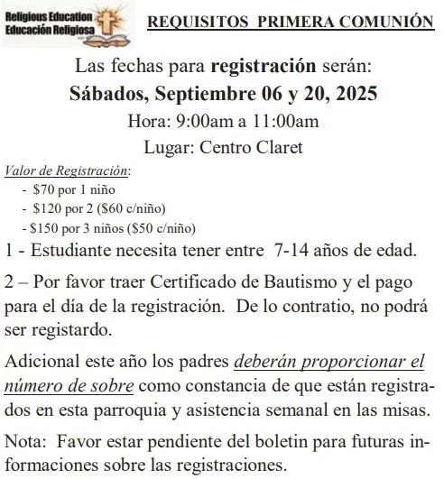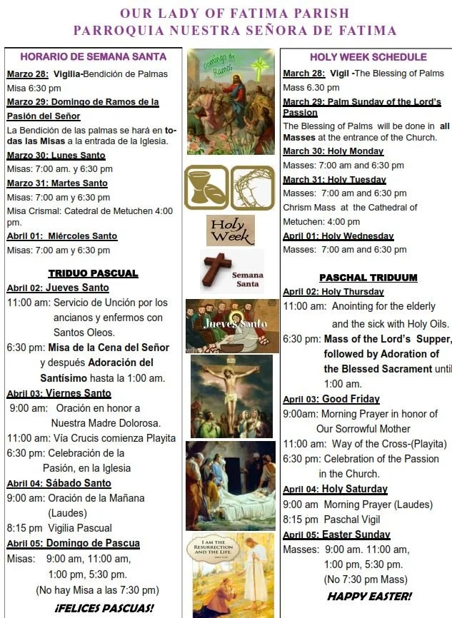 (Also by appointment through the parish office / Tambien por cita en nuestra oficina parroquial)